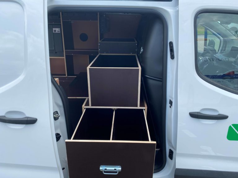 Afin de vous permettre de gagner du temps, de l’efficacité et d’optimiser votre temps de travail, nous vous proposons des agencements en bois réalisés sur-mesure. Les casiers de rangement transforment votre utilitaire en véritable atelier mobile. Pour un aménagement sur-mesure de votre fourgon, contactez notre service commercial.